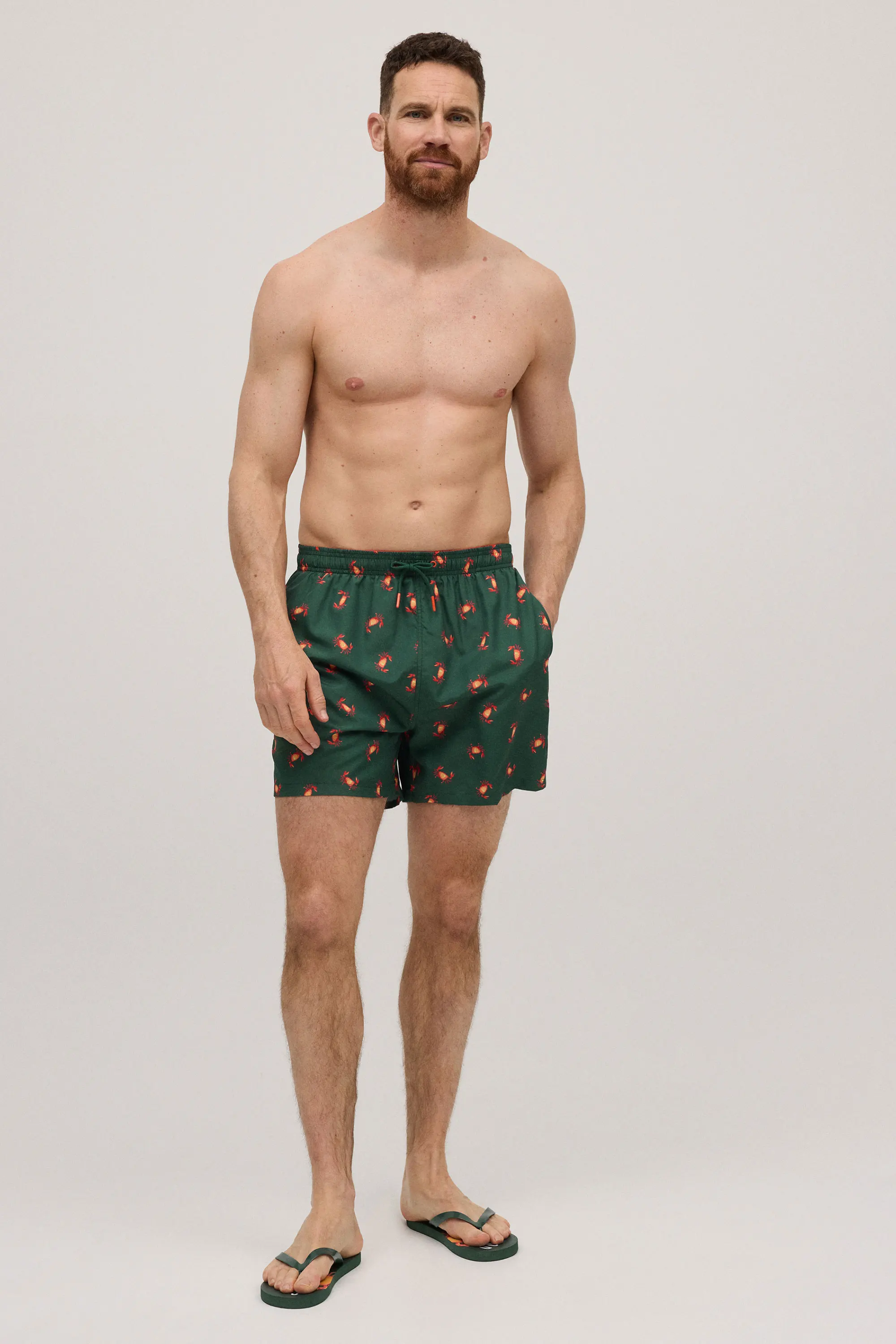 Ці шорти поєднують високу якість і трендовий вигляд. Модель у темно-зеленому кольорі з принтом крабів створює сучасний образ для пляжу або басейну.