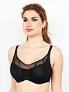 Модель із напівпоролоновою чашкою на каркасах забезпечує надійну підтримку, зберігаючи природну форму грудей. Верх чаш оформлений м’якою еластичною сіткою, яка делікатно прилягає до тіла. Регульовані, не знімні бретелі та класична застібка на два гачки гарантують зручну посадку.