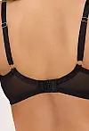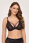 М’яка чашка Т-подібного крою виготовлена з міцної прозорої сітки та делікатно доповнена пласким еластичним мереживом. Напівпрозора фактура надає моделі витонченого та сучасного вигляду. Стабільна конструкція на кісточках разом із бічною підтримкою для великої чашки з тонкого паралону формує красиву округлу форму та забезпечує природне положення грудей. Акуратний декоративний акцент на перемичці підкреслює характерний дизайн моделі.