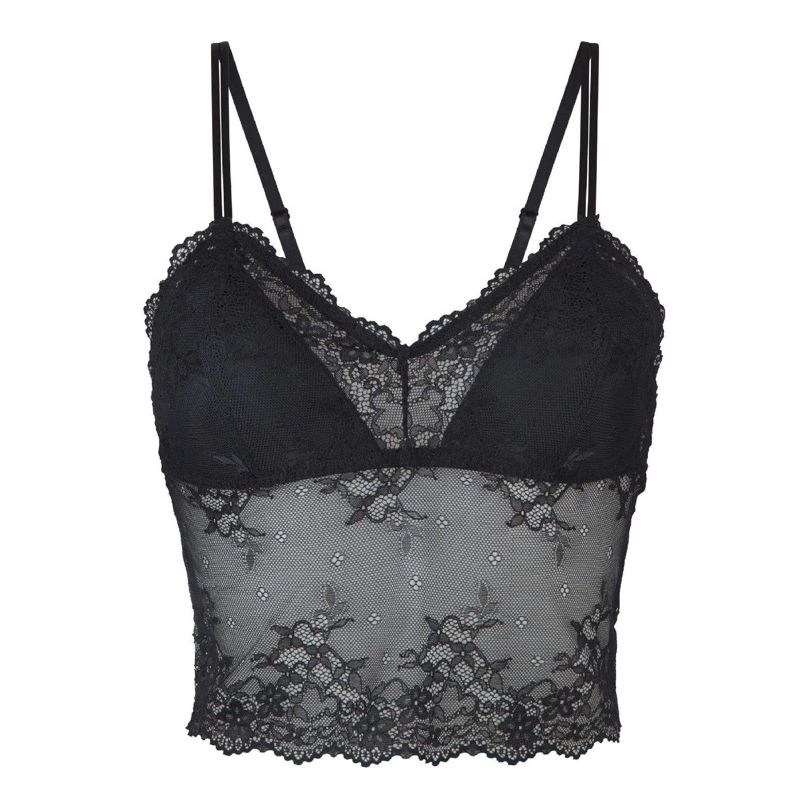 Виготовлений із еластичної тканини та оздоблений елегантним мереживом, він поєднує комфорт і жіночність. Завдяки стильному дизайну топ можна носити як білизну або як самостійну частину образу в теплу пору року. Регульовані бретелі забезпечують зручну посадку.