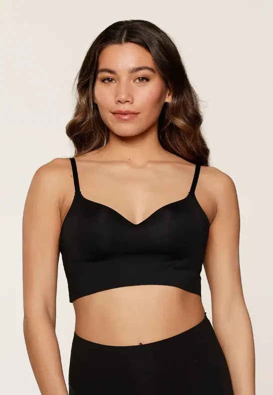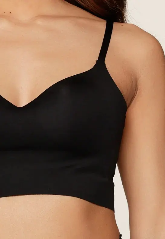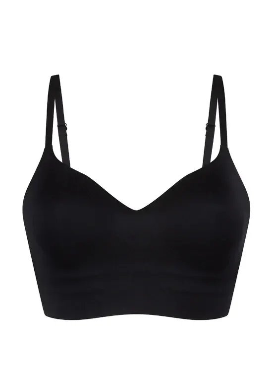 Виконаний у класичному чорному кольорі, цей бра має м’які формовані чашки без каркасів, що забезпечують природну посадку без тиску. Регульовані тонкі бретелі дозволяють точно підлаштувати топ під фігуру. Високоякісна тканина приємна на дотик і відчувається як друга шкіра.