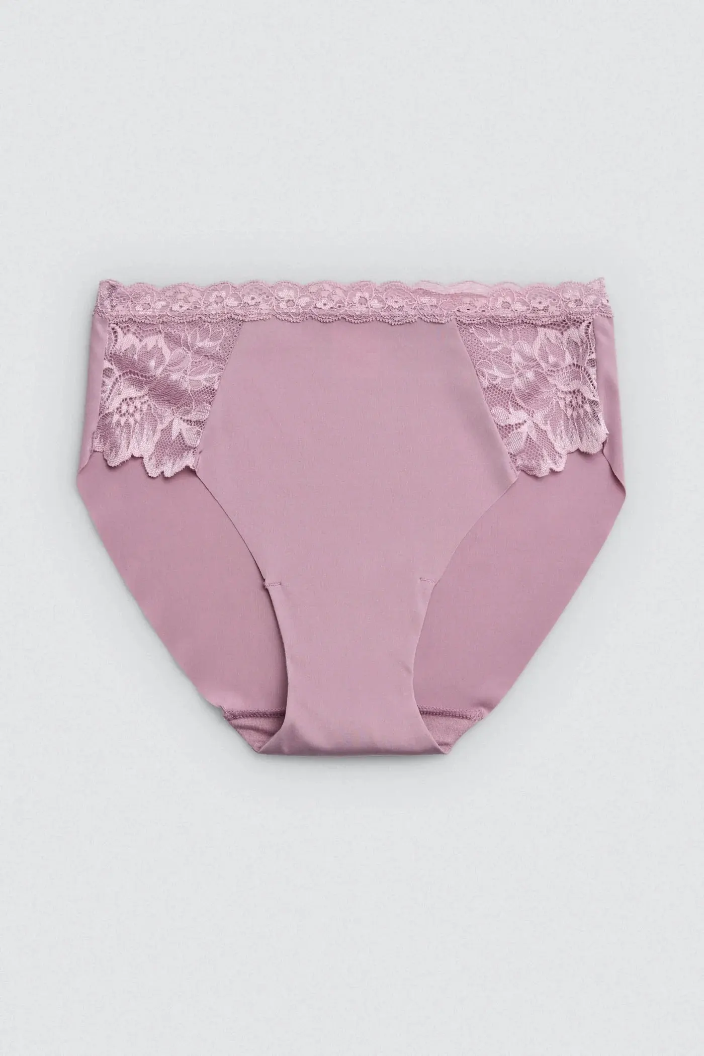 Ажурні вставки з боків і на поясі додають ніжності та витонченості, не зменшуючи функціональності. Подвійна бавовняна ластовиця гарантує додатковий комфорт і гігієнічність.