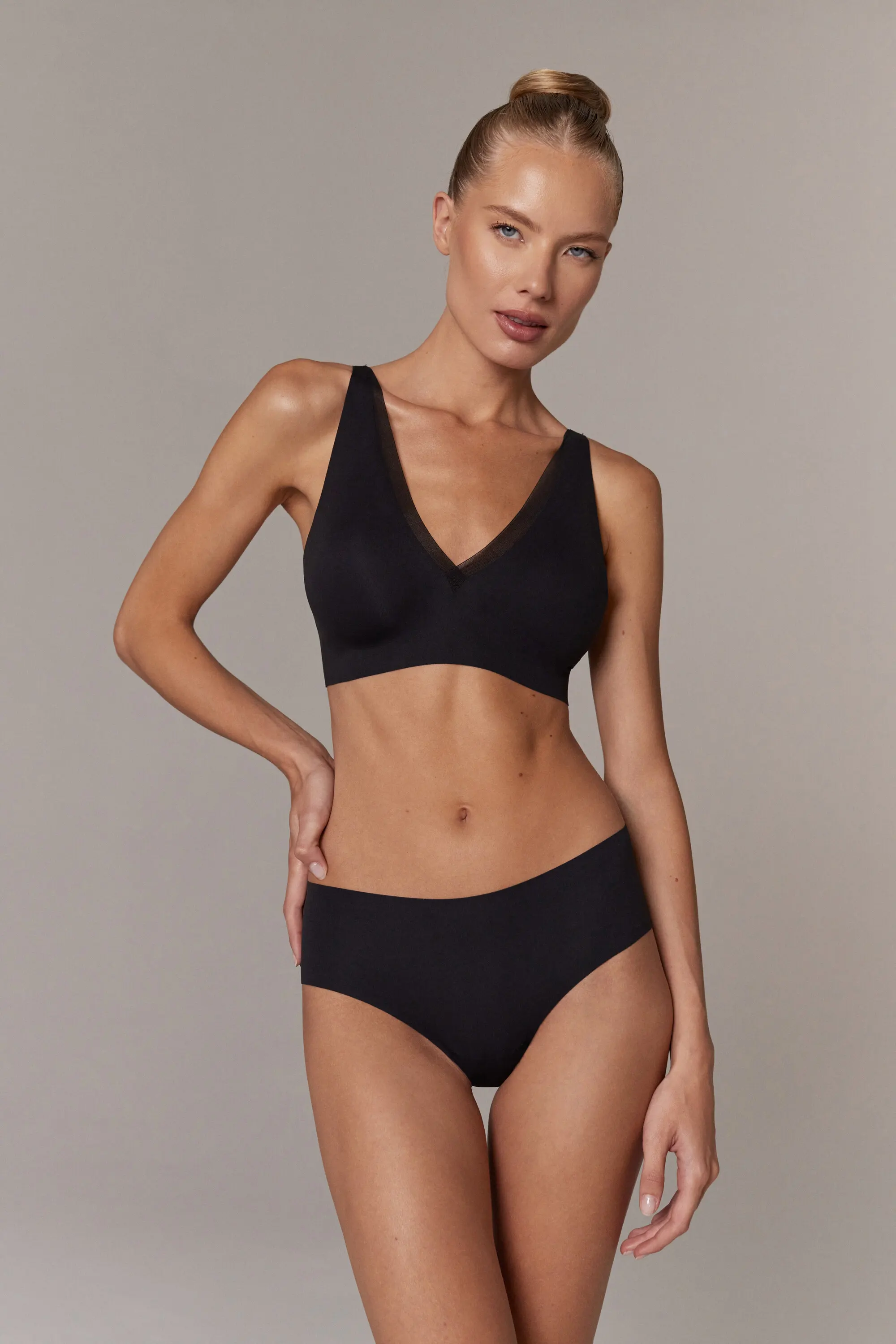 Трусики бразиліанського крою Aruelle із середньою посадкою поєднують комфорт та елегантний мінімалізм. Склеєний пояс створює ідеально гладкий силует під одягом, а прозора сітка на спинці додає легкості та витонченості.
