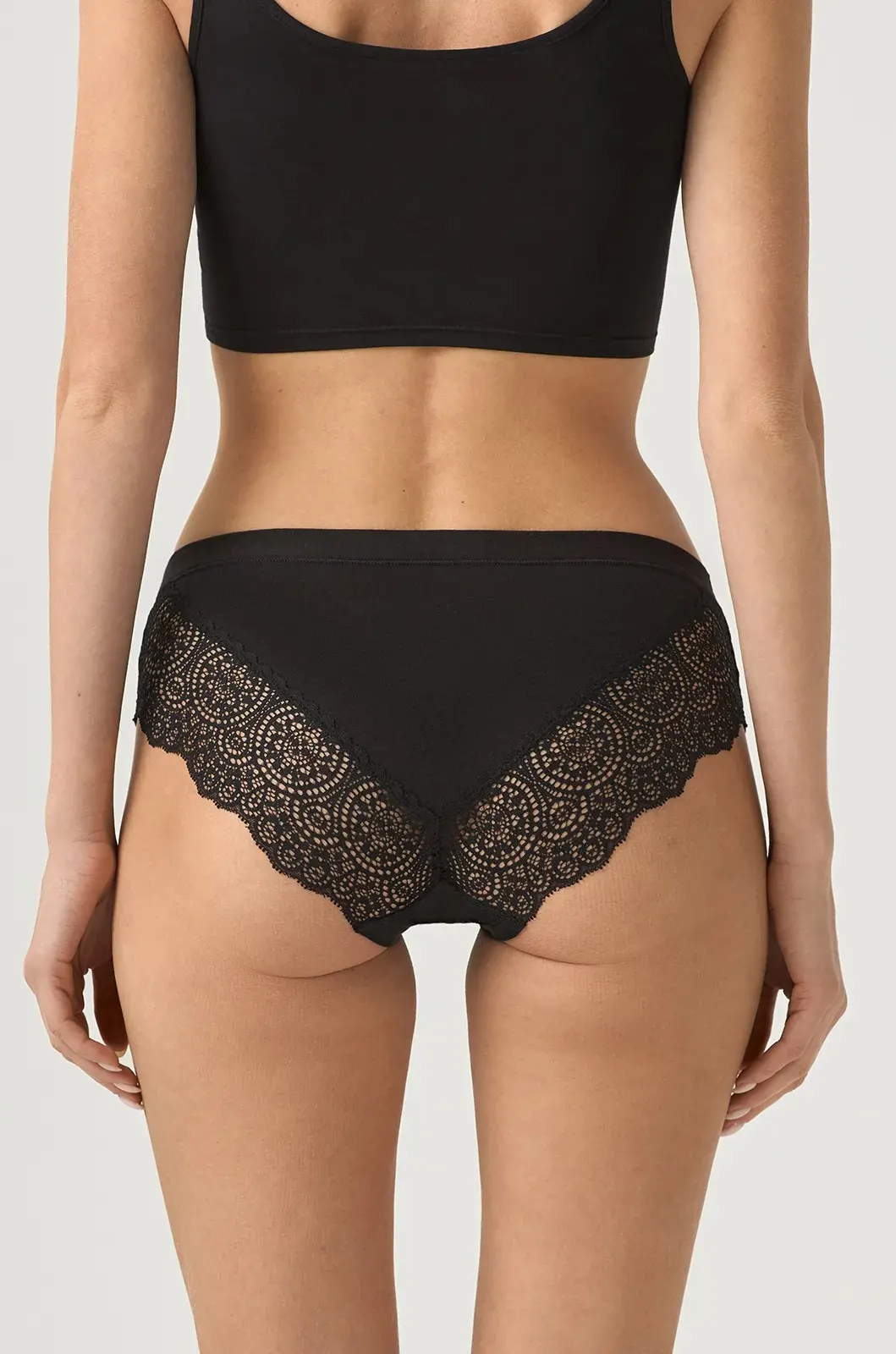 Модель виконана у чорному кольорі з м’якого, приємного до тіла матеріалу на основі модалу та бавовни, що забезпечує дихаючий ефект та м’якість при носінні. Делікатне мереживо з квітковим мотивом додає білизні елегантності та жіночності.