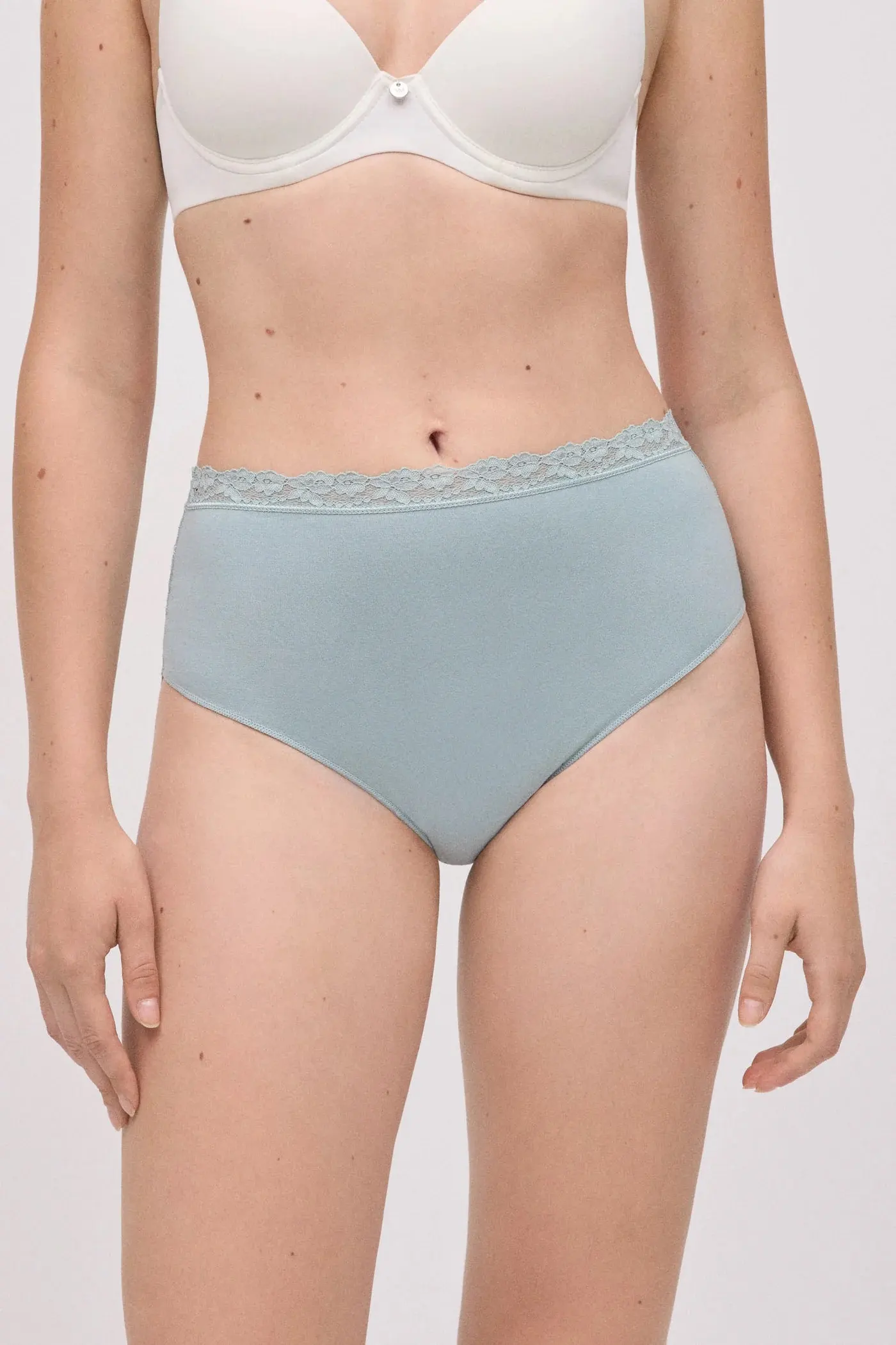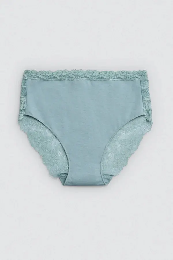 Модель виготовлена з натуральної бавовни, приємної на дотик, з високою посадкою та охоплюючим кроєм для кращої підтримки. Ажурне мереживо на поясі та ззаду надає виробу делікатного та елегантного вигляду.