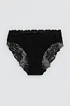 Модель має зручну посадку, оздоблена мереживом на поясі та ззаду, що додає образу жіночності та вишуканості. Завдяки м’якій бавовняній тканині ці трусики приємні до тіла та добре дихають - ідеальний вибір на щодень.
