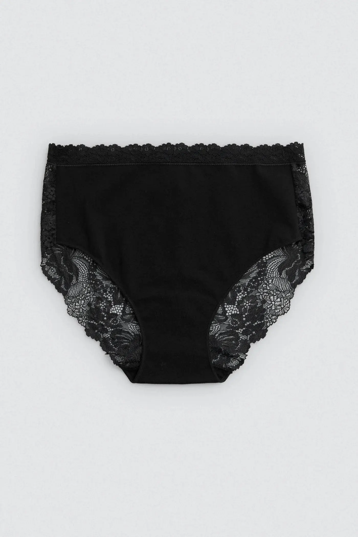 Модель виготовлена з натуральної бавовни, приємної на дотик, з високою посадкою та охоплюючим кроєм для кращої підтримки. Ажурне мереживо на поясі та ззаду надає виробу делікатного та елегантного вигляду.