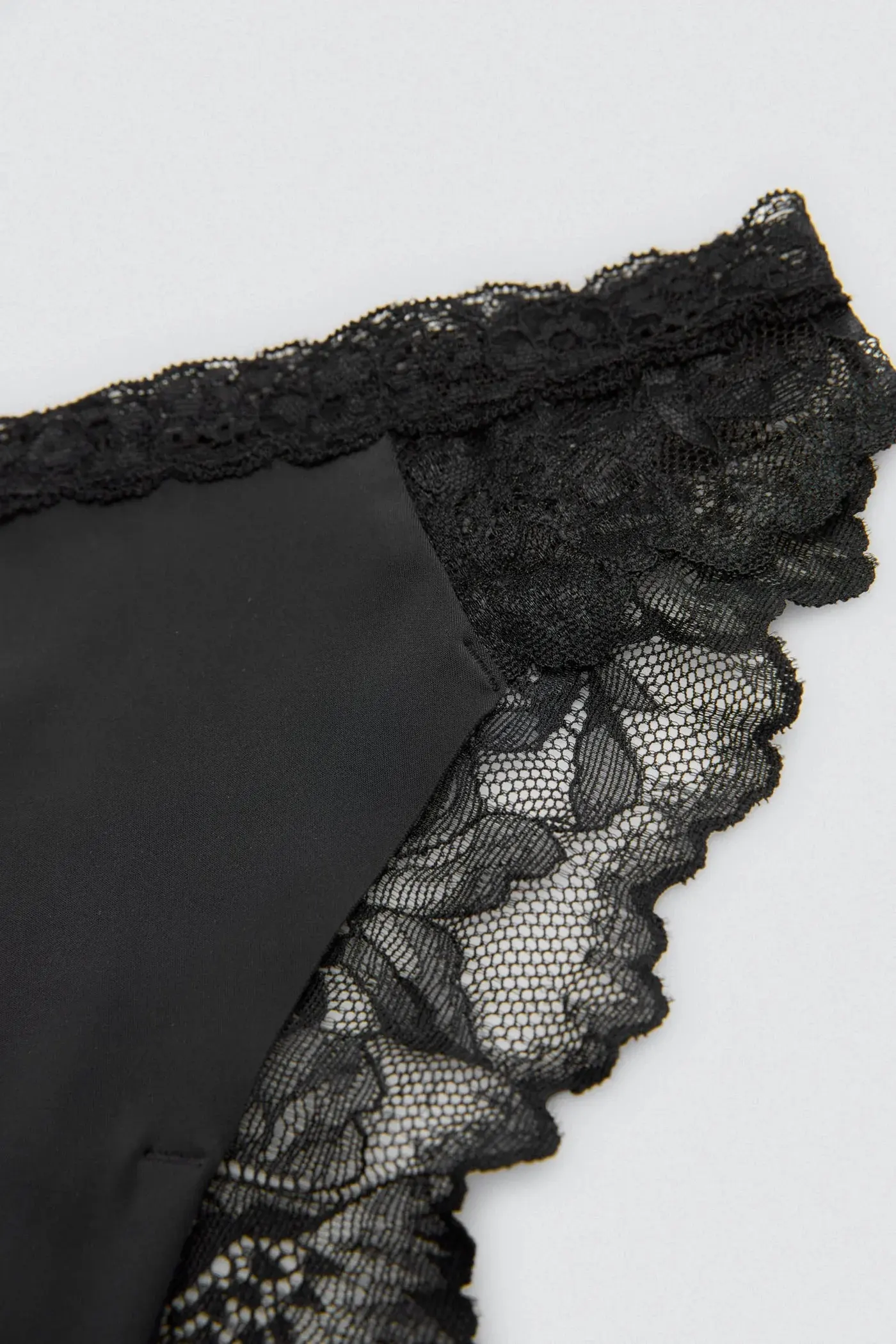 Лазерна обробка країв забезпечує гладкий силует і непомітність під одягом, а ніжне мереживо з боків і на спинці додає вишуканості. Бразильський крій підкреслює форми, забезпечуючи зручну посадку без заломів завдяки еластичній тканині.