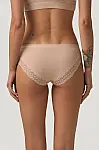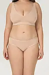 Жіночі трусики бікіні Ellen з колекції Almeria у бежевому кольорі. М’яка тканина на основі модалу дарує приємні відчуття на тілі, має шовковисту текстуру та добре зберігає форму після прання. Модель доповнена мереживними елементами, що додають ніжного та акуратного вигляду.
