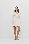 Халат оснащений внутрішнім регульованим шнурком і зовнішнім поясом-зав’язкою для зручної та універсальної посадки.