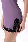 Гарно оздоблена декольте та низ ажурним мереживом, а кокетливий міні-розріз збоку додає легкості образу. Сорочка оснащена тонкими бретелями.