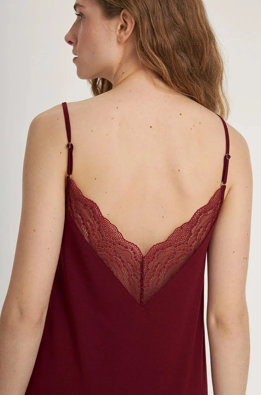 Сорочка з колекції Meryl — це елегантна жіноча модель напівприталеного силуету середньої довжини, створена для максимального комфорту та ніжного дотику до шкіри. Регульовані бретелі дозволяють підлаштувати посадку, а витончене мереживо додає виробу вишуканості та жіночності.