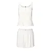 Майка (singlet) на бретелях, доповнена ґудзиками спереду. Шорти з м’якою еластичною резинкою в поясі забезпечують комфортну посадку. Тканина має фактурну pointelle структуру, завдяки чому виглядає витончено та добре пропускає повітря. Модель м’яка, приємна до тіла та ідеально підходить для сну й домашнього відпочинку.