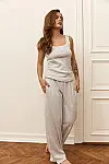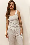 Жіночий піжамний комплект Your Touch — легка бавовняна модель сірого кольору з білими вставками на топі.