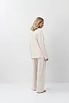 Колір — ніжно-рожевий. Смугастий принт із маленькими рожевими бантиками.