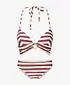 Жіночий роздільний купальник LingaDore — стильний комплект із трикутним топом і плавками із класичною посадкою. Модель виконана в актуальному дизайні Sable stripe зі смугастим принтом, що створює сучасний і витончений пляжний образ. Топ трикутної форми щільно прилягає до тіла, забезпечуючи комфортну посадку, плавки зі стандартною талією підкреслюють силует. Купальник легкий, еластичний та ідеально підходить для відпочинку на морі та біля басейну.